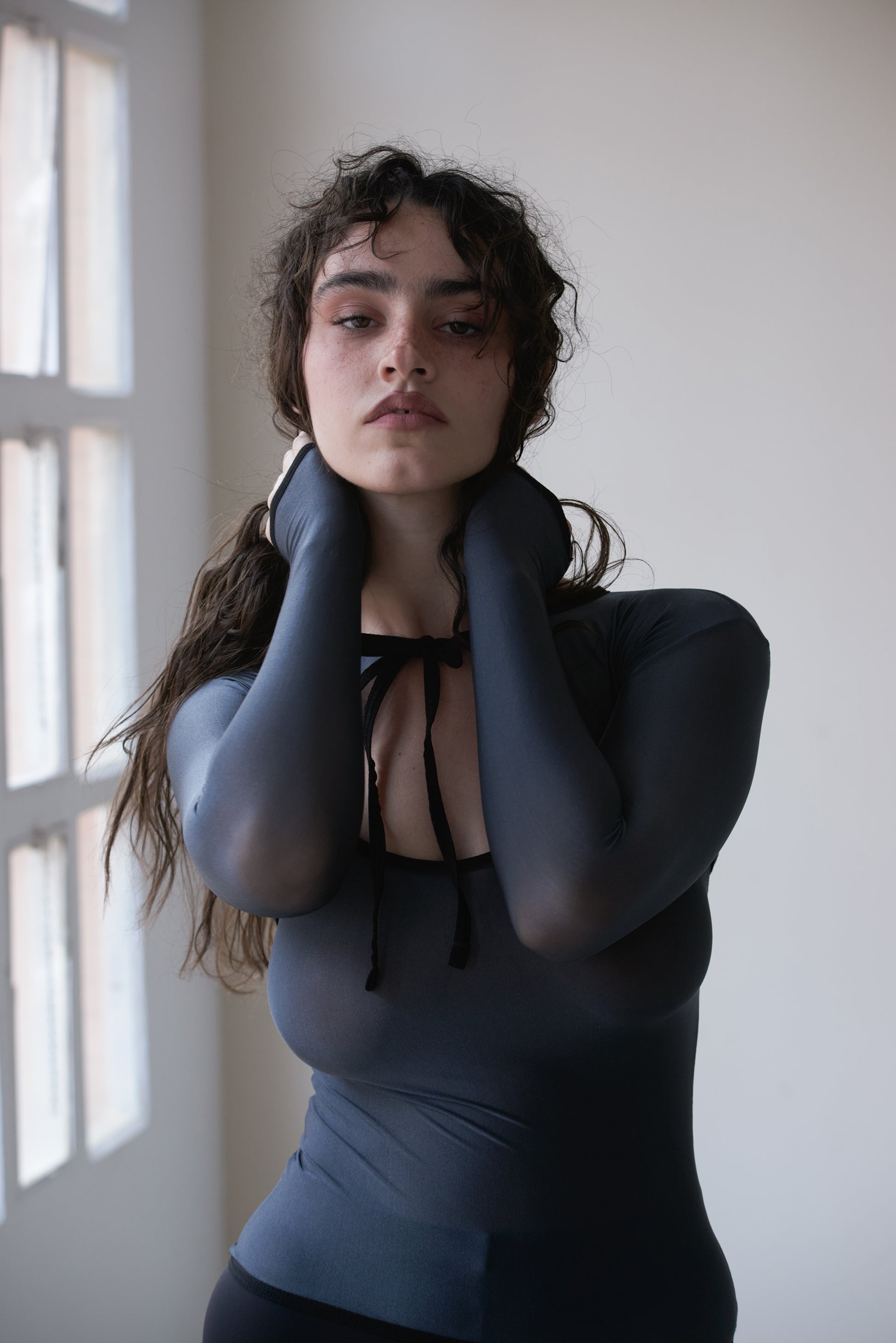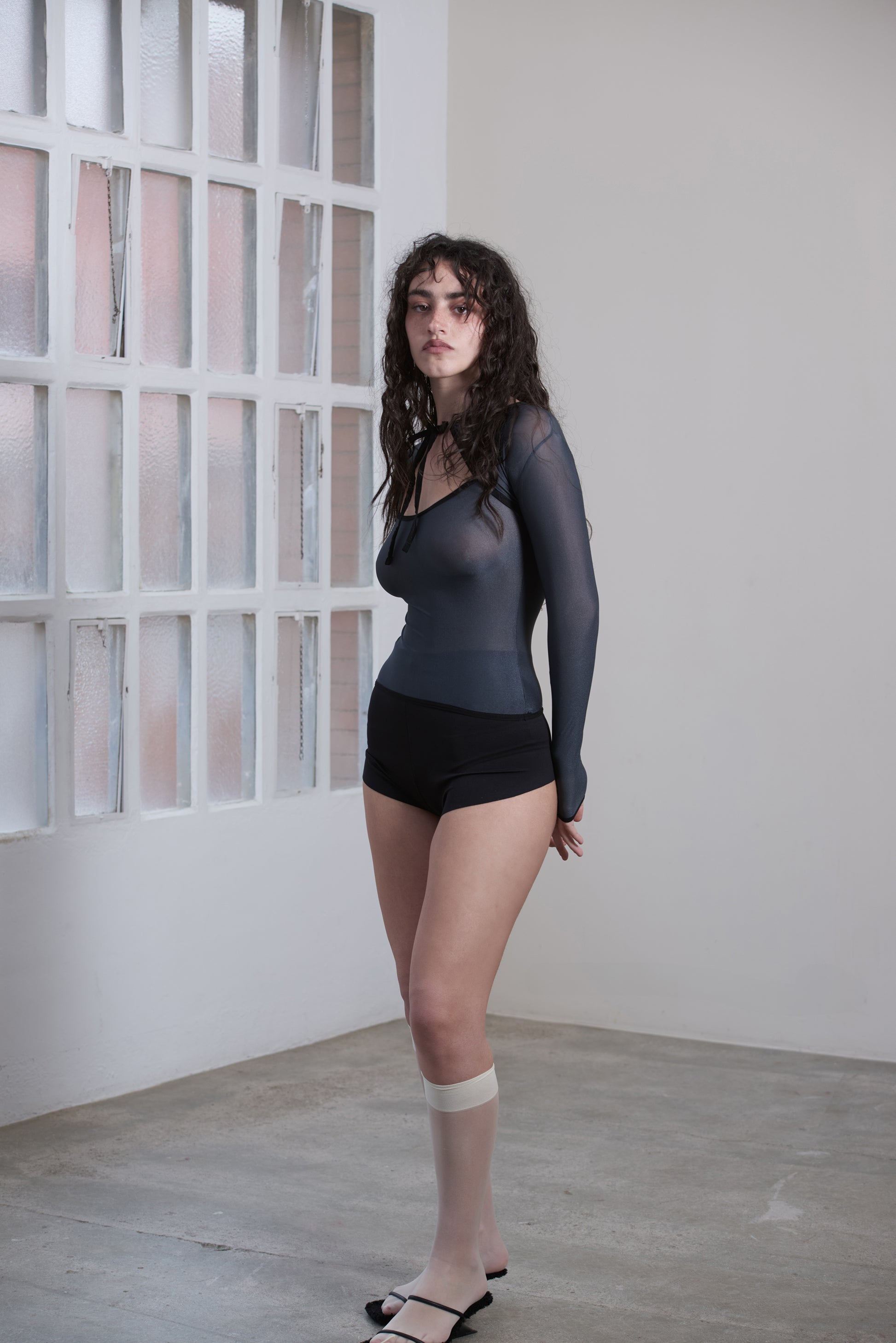The stretch mesh fabric offers a smooth, body-contouring fit with a soft, barely-there feel and excellent recovery.