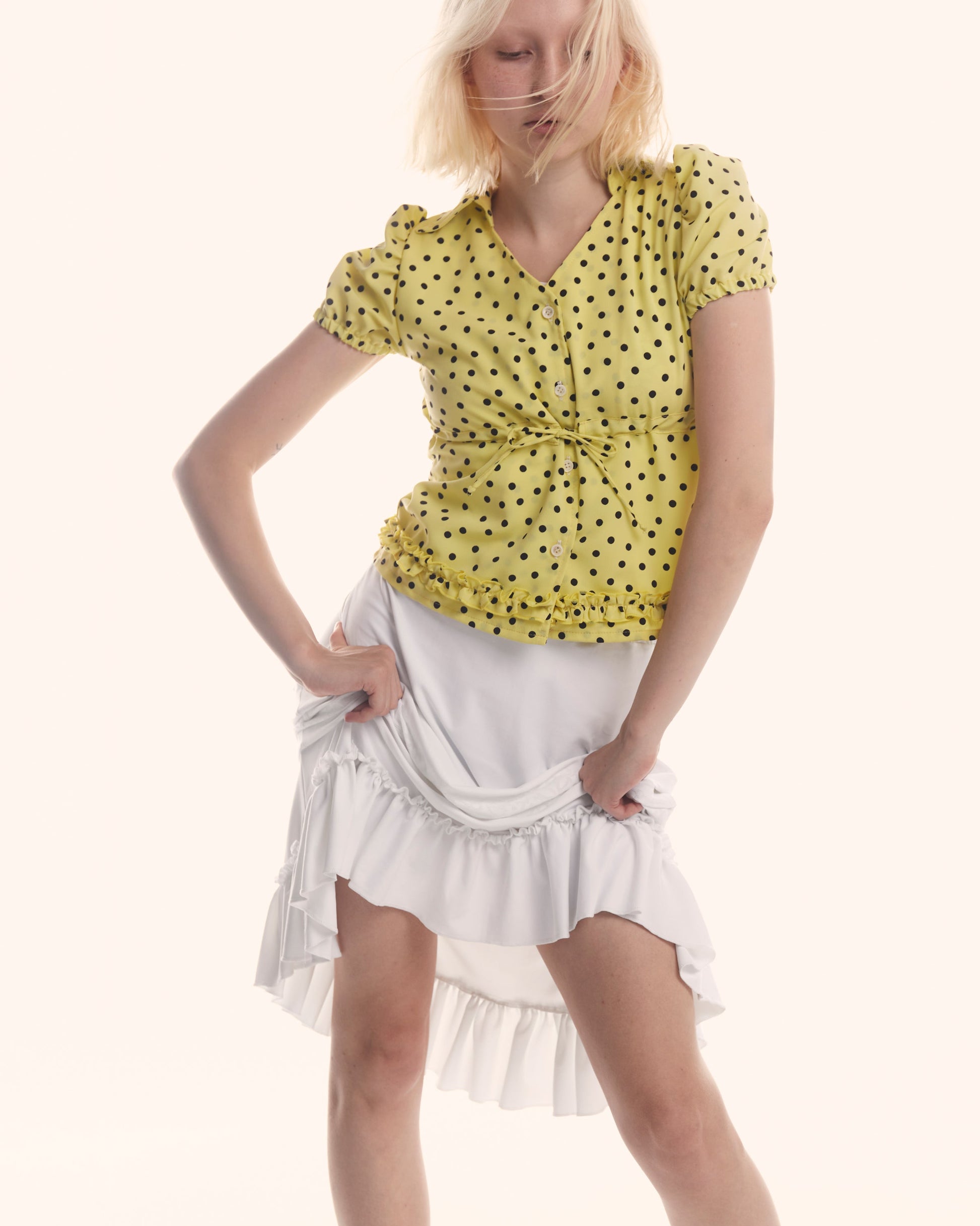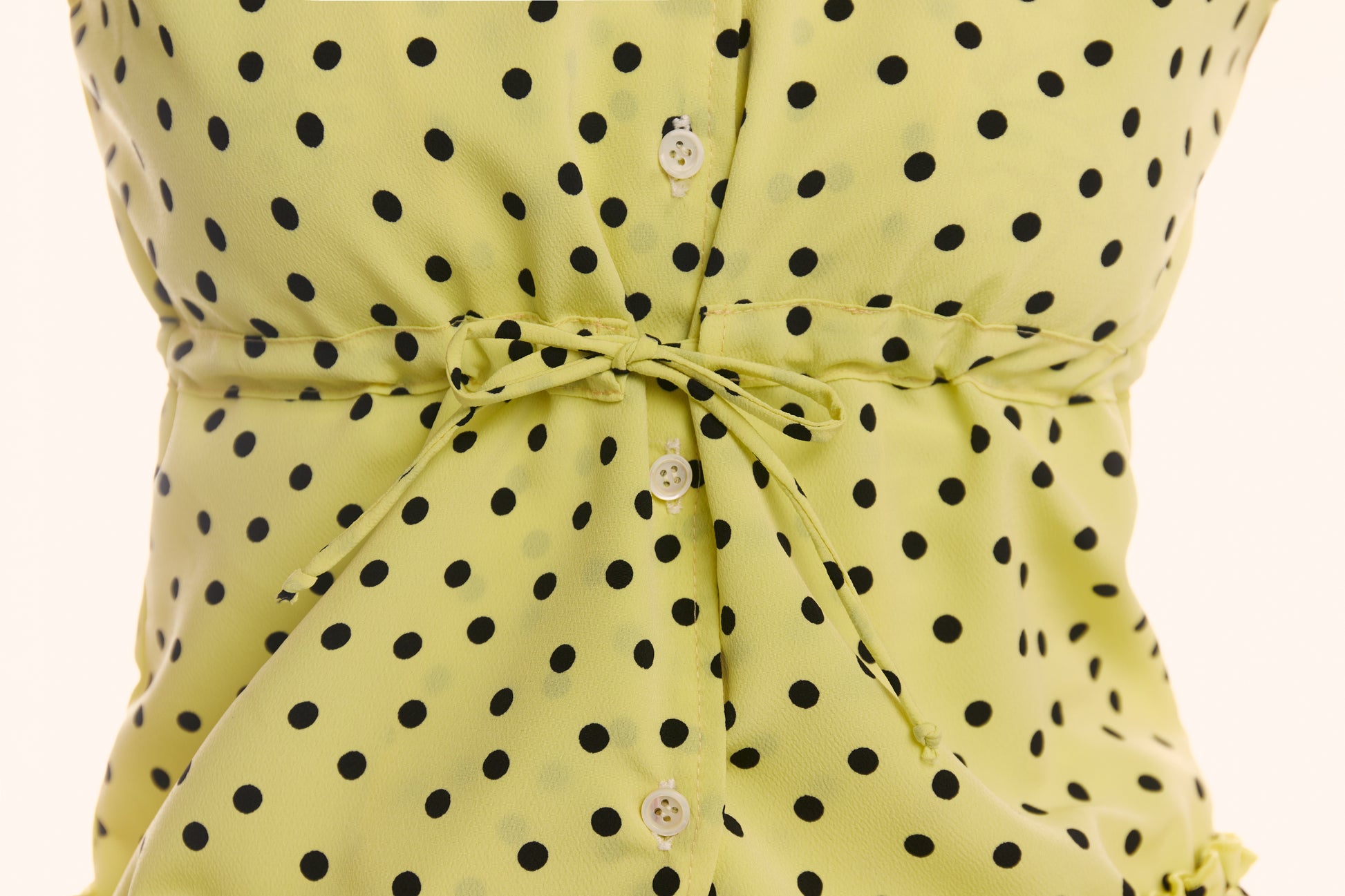 Polka dot shirt with puff sleeves and a drawstring at the chest