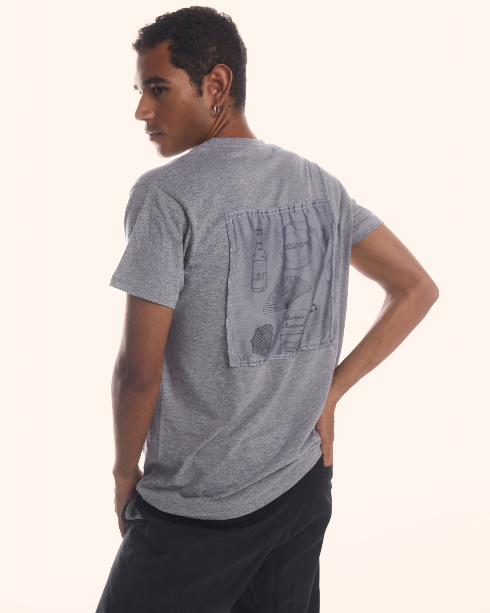 This V-neck T-shirt is crafted from 100% cotton for a soft, breathable feel, it features short sleeves and a front DTF and in the back as a organza patch with DTF design.