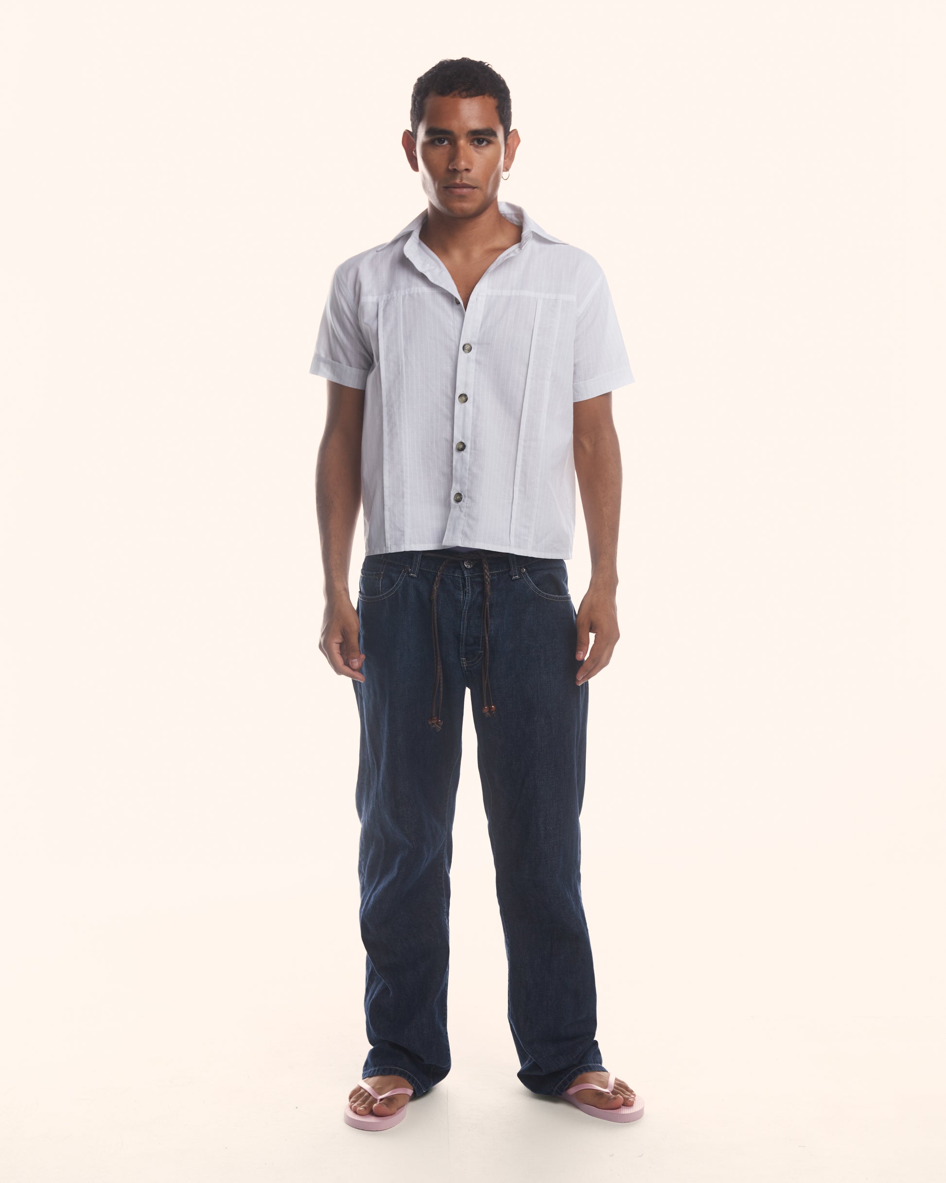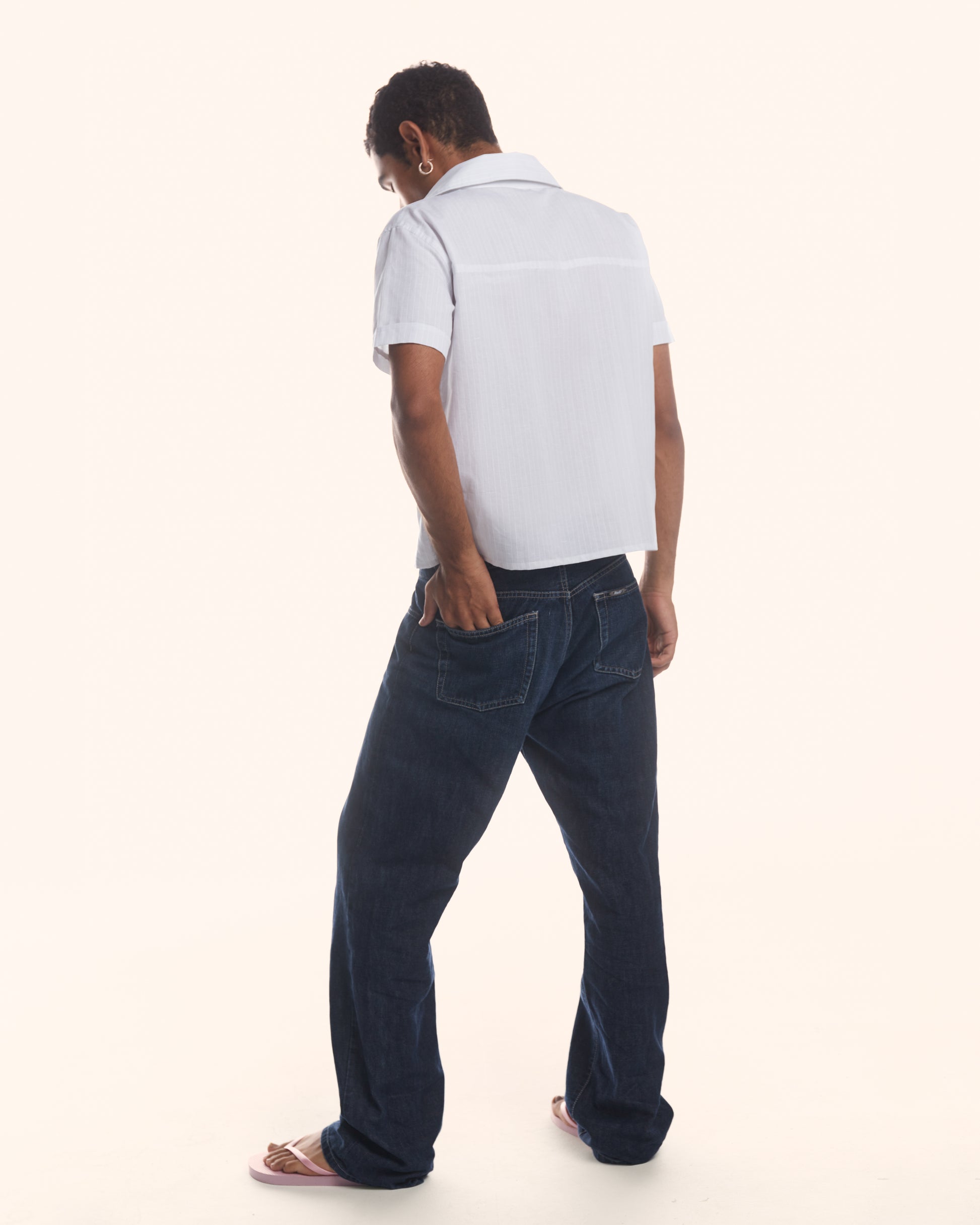 Relaxed short sleeve shirt made from 100% cotton. Lightweight and breathable, it features a subtle crinkled texture that adds a soft feel and fluid drape. Designed with a straight hem, camp collar, closure by buttons. Ideal for warm days or laid-back layering.