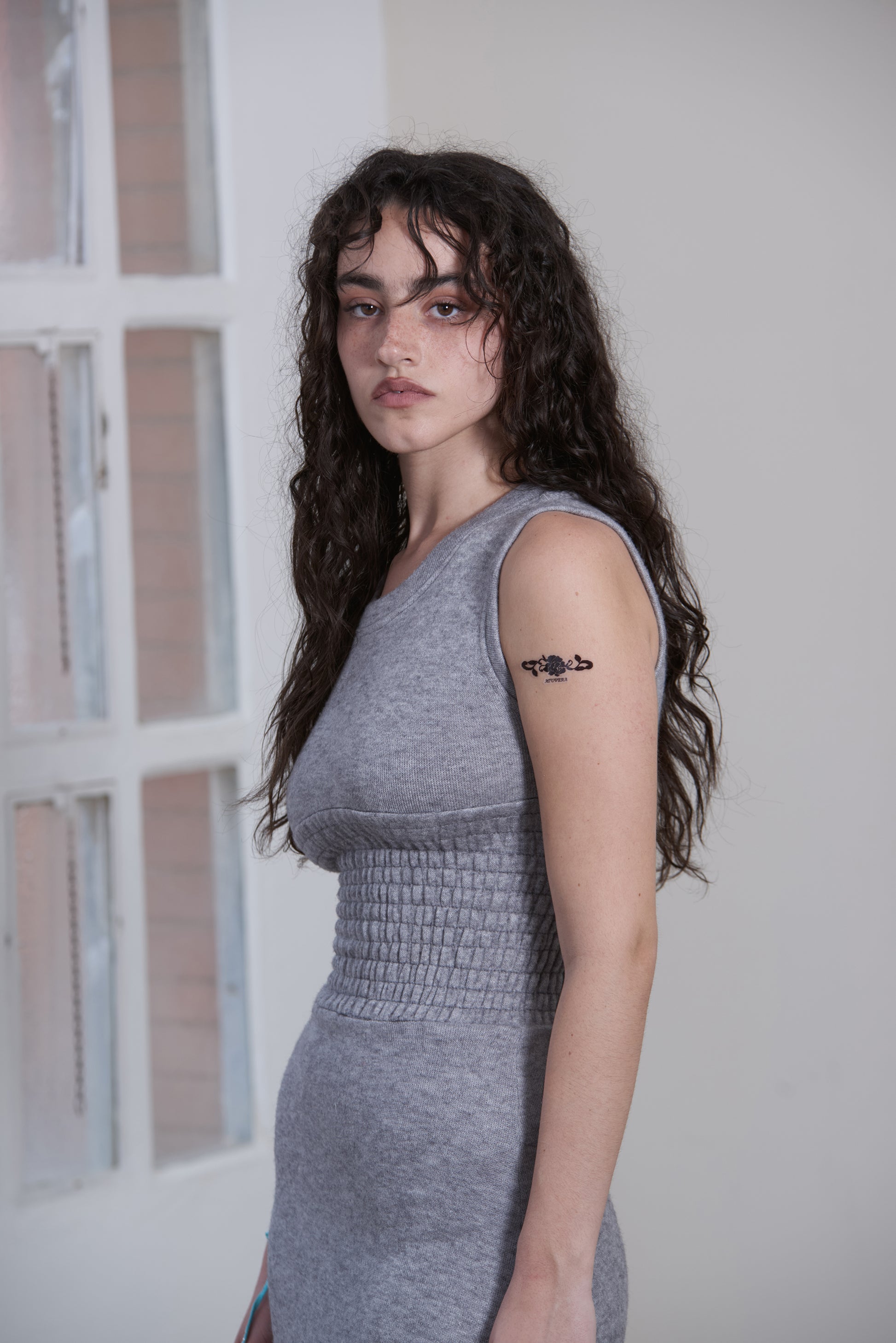 Sleeveless Midi Dress with Asymmetric Ruffle Hem – Gray